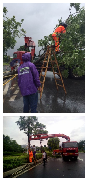 (對(duì)被臺(tái)風(fēng)刮倒的樹(shù)木進(jìn)行扶正,保障路面安全)