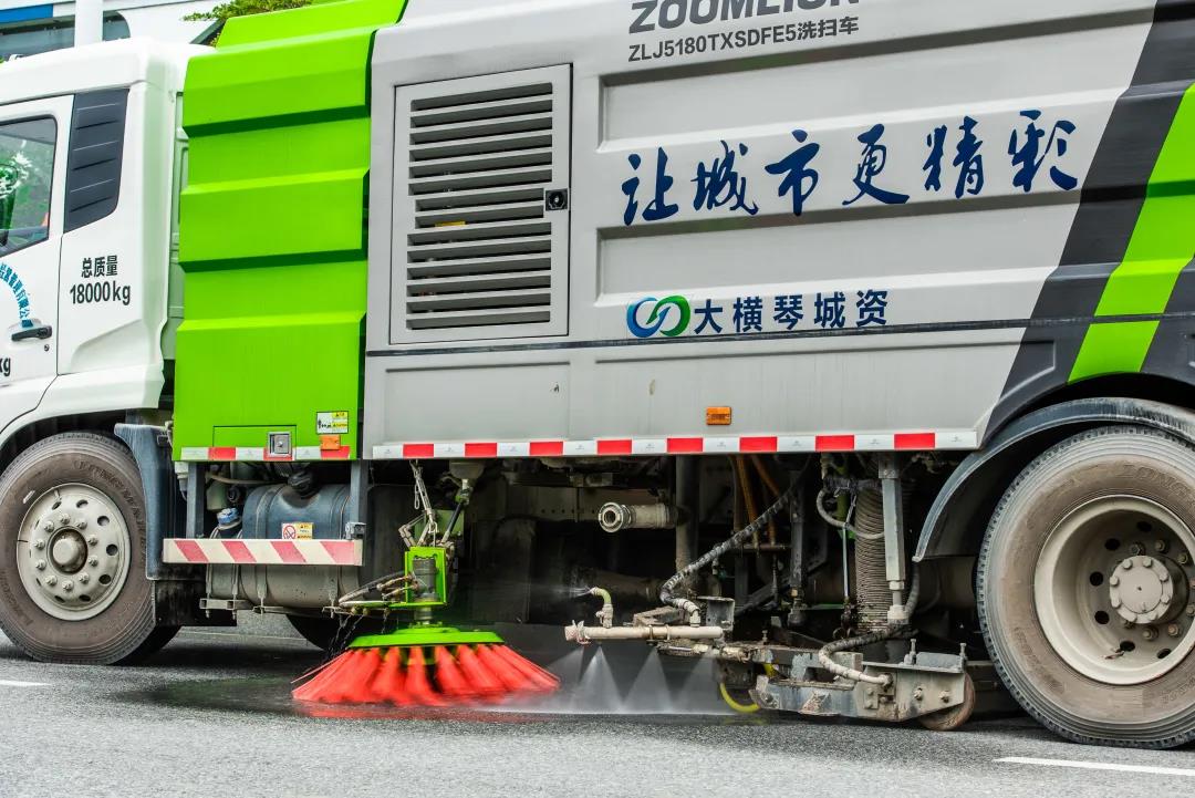 有的熟練操控著“洗掃車”進行路面清掃