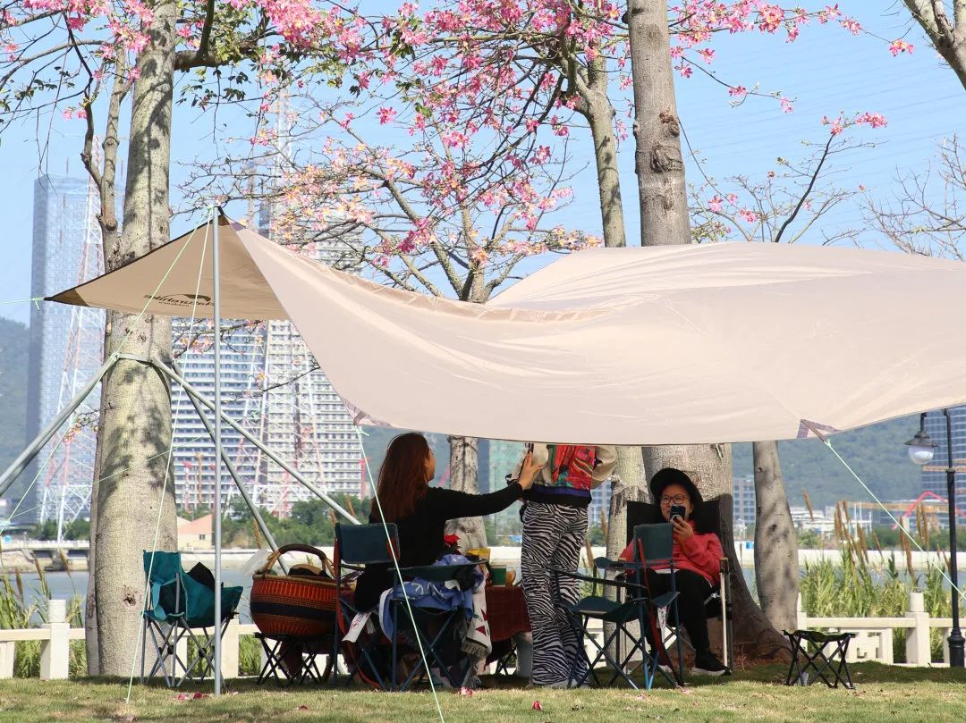 分別位于1號驛站、2號驛站和5號驛站的疊石水景附近,大橫琴城資將原有生長的老化綠籬打造為通透的草坪景觀,極大地拓寬了游客的游玩區域,為露營愛好者提供了絕佳的露營場地,游客可以在草坪上一邊野餐玩耍,一邊抬頭賞花。