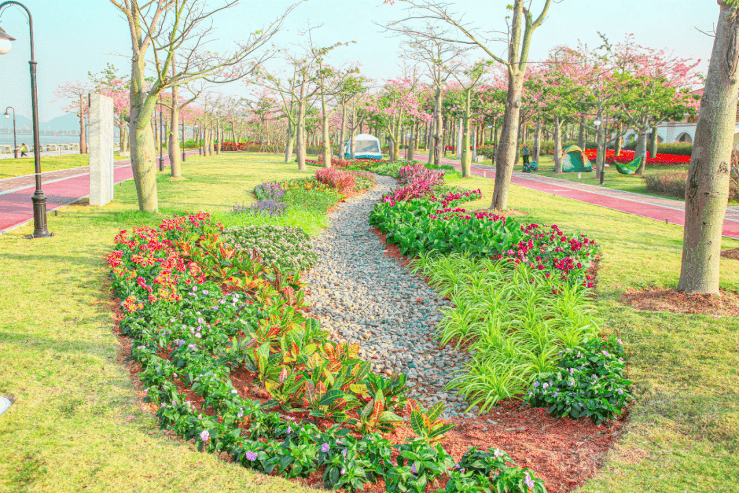 為了給市民游客營造最佳的賞花體驗,大橫琴城資以打造“三大露營點”“四大微景觀”“超大草坪+亮色花海”為切入點,對花海長廊累計約2萬平方米的公共綠地進行了全面提升改造。