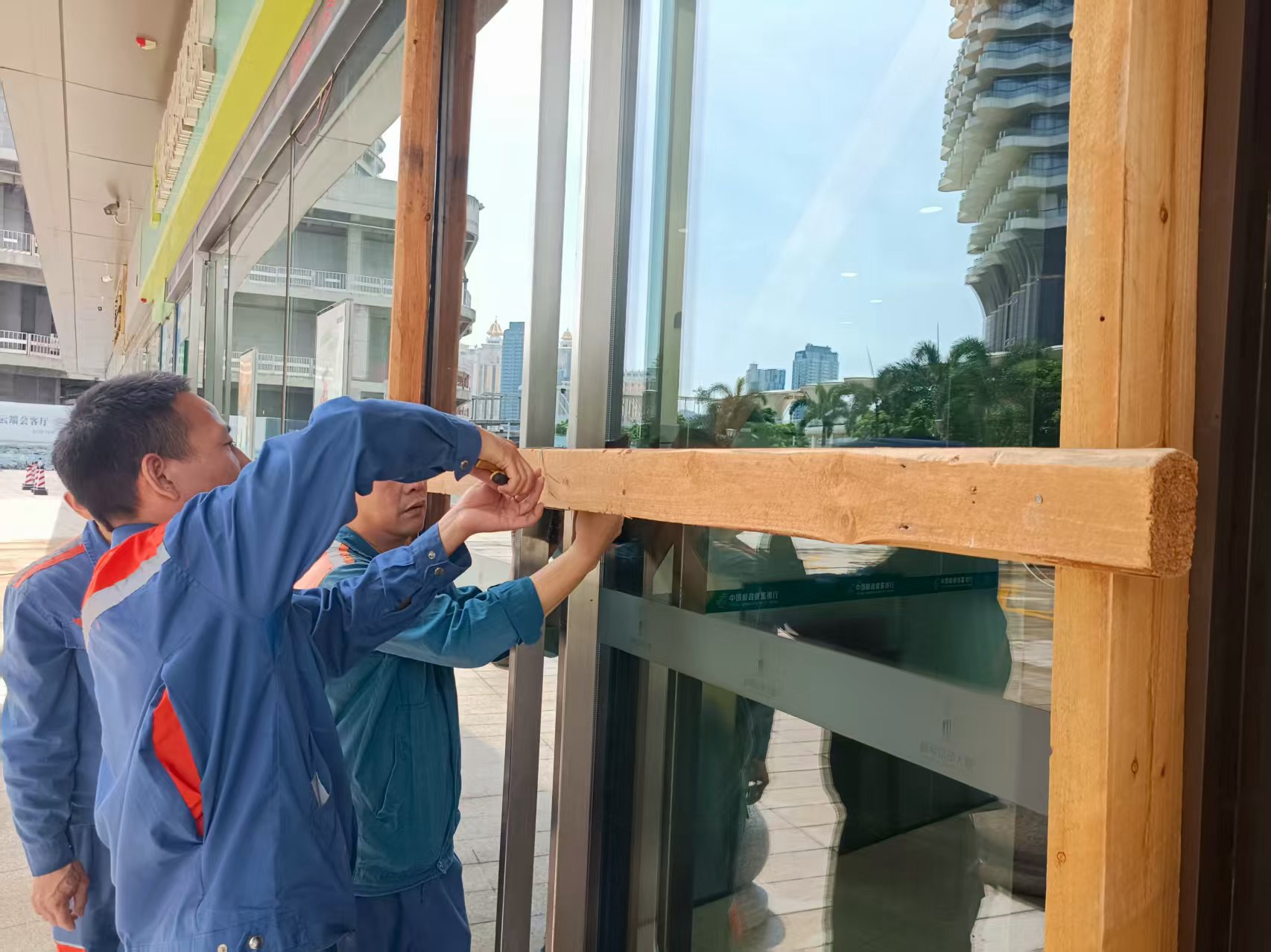 對在管的橫琴總部大廈、新家園小區、銀鑫花園小區等物業項目提前采取防風加固措施,各區域出入口及地勢低洼處配備沙袋,設置防水擋板,并做好雨水篦子及下水道排水渠雜物的清理工作。