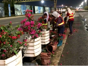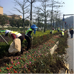其中,在綠化方面,城資公司于2月29日連夜采購苗木,3月1日便投入皮卡車、農夫車6臺、灑水車5臺,安排50名工人加班至3月2日凌晨,對管養范圍內環島東路、長隆大道的綠化、綠化墻進行全面清潔、除雜草、修剪、澆水、多次降塵,對環島東交橫琴大道的中間綠化帶和渠化島內京師園林改造遺留枯死的龍船花進行更換,將其更換成勒杜娟,對南山咀綠化墻再次補苗美化,共更換補植800余平米。3月2日早6點,再次對重點路段綠化帶進行清理、降塵。